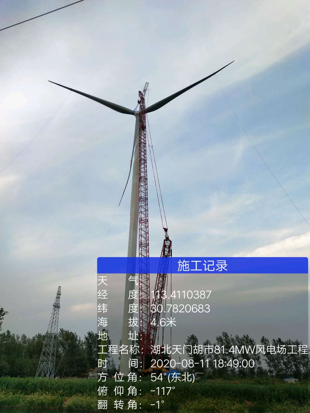 四川同創(chuàng)湖北項目:天門謝家塆風電項目首臺風機安裝完成