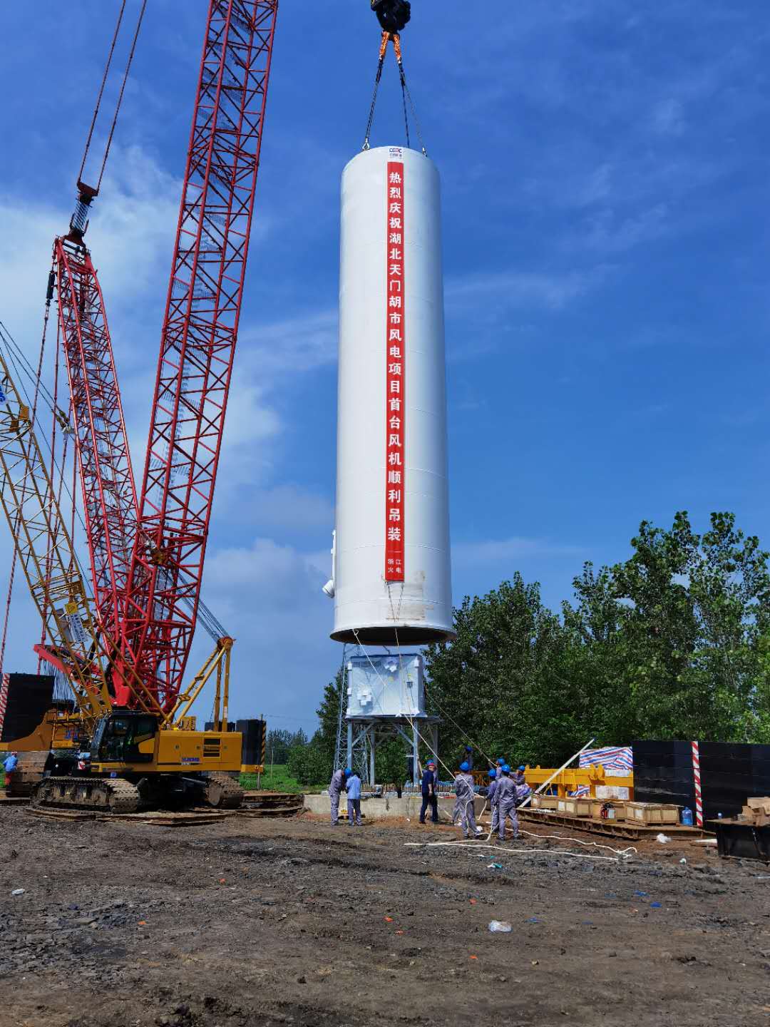 熱烈慶祝湖北天門(mén)胡市風(fēng)電項(xiàng)目首臺(tái)風(fēng)機(jī)順利吊裝